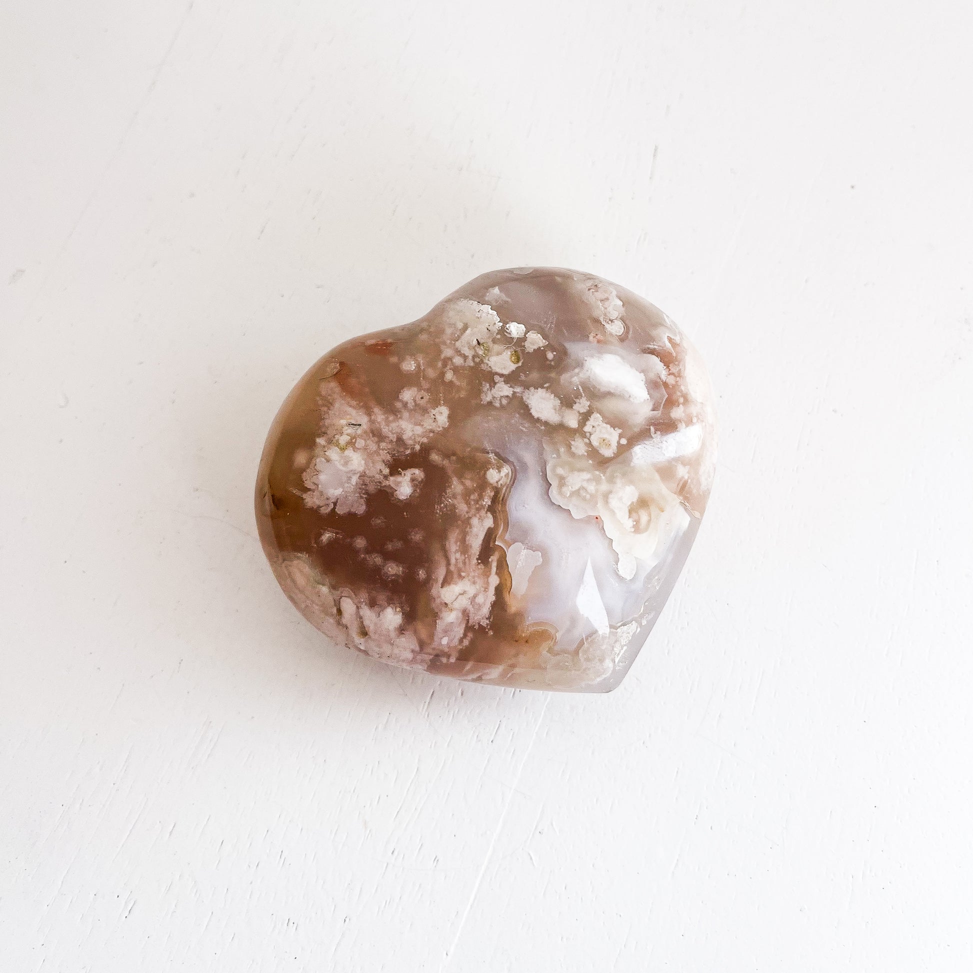 Perfect as a decorative crystal, a heartfelt gift, or a symbol of growth and love, this Flower Agate Heart brings calming beauty and positive energy to any space.